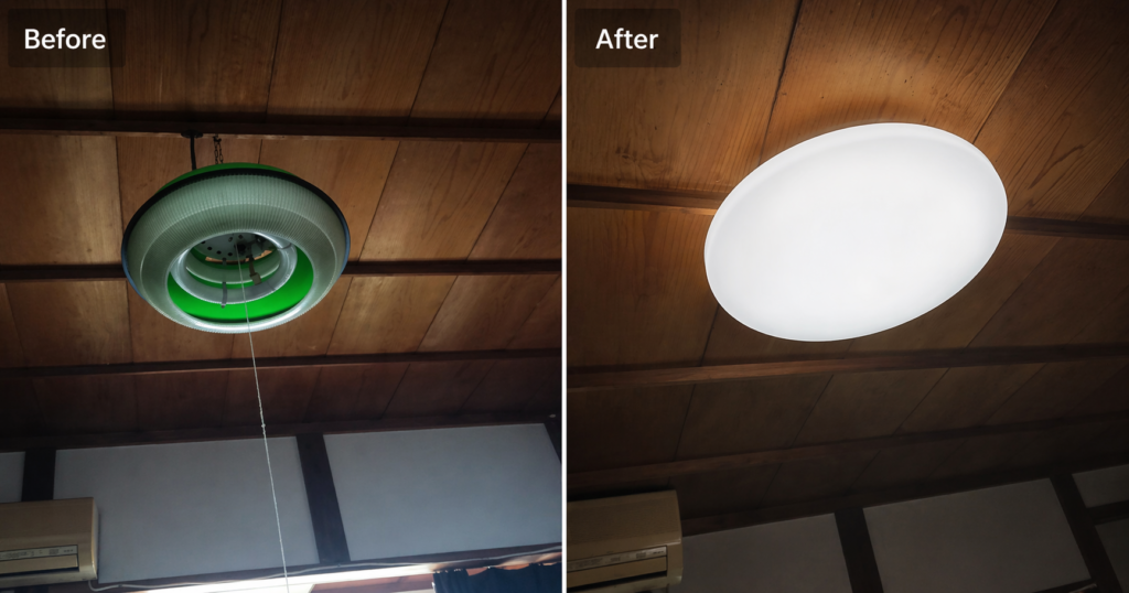 佐賀市の戸建て住宅でシーリングライトの取り付け工事を施工。蛍光灯からLEDシーリングライトへ交換し、リモコン操作が可能に。費用・工期・施工の流れを詳しく解説します。