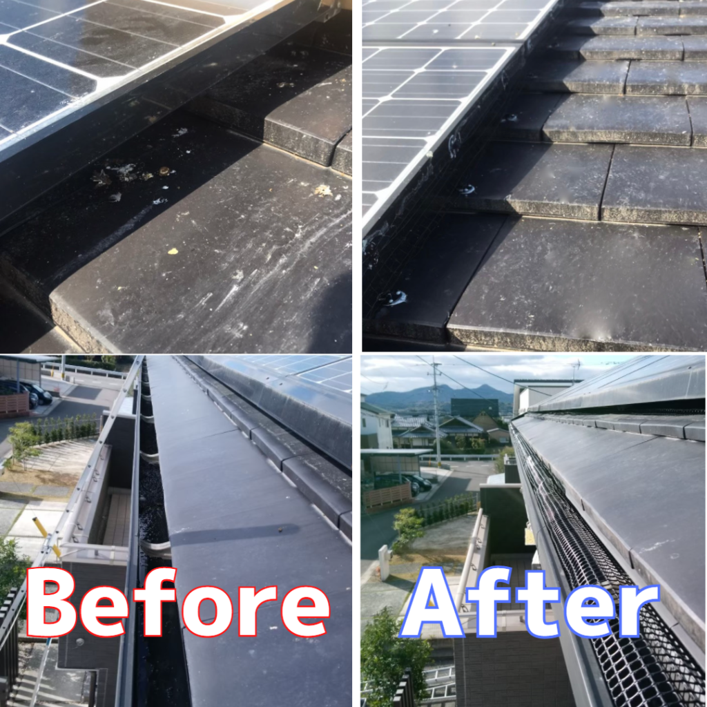 【小城市】太陽光パネルの鳩対策と雨樋のつまり防止を行いました。