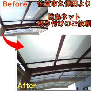 【佐賀市久保田】カーポートに防鳥ネット作成のご依頼