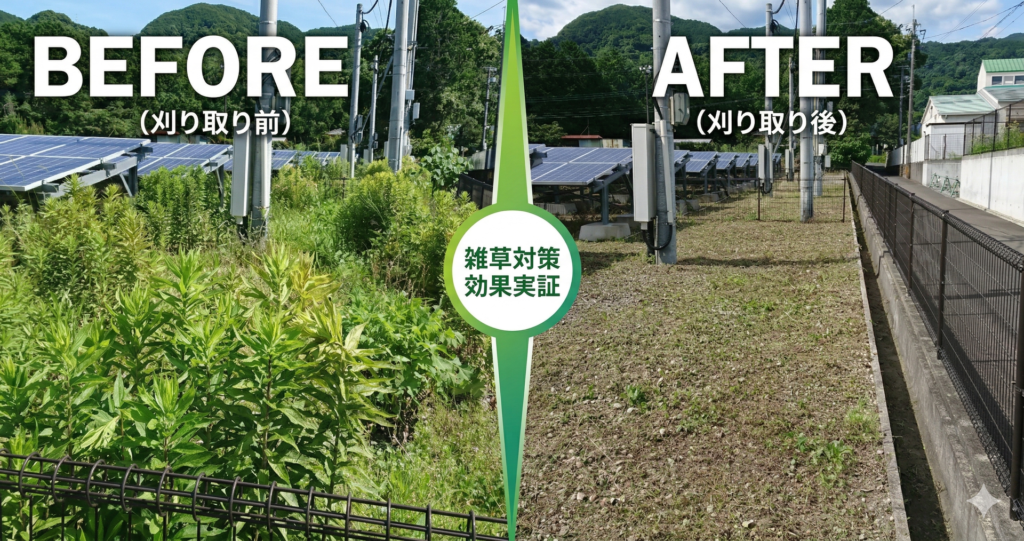 【佐賀市金立町】野立て太陽光施設の草刈り・除草作業|近隣クレーム解消・発電効率改善の施工事例