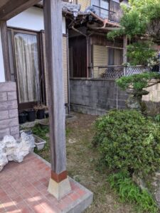 施工後の写真と見比べると、その変化は一目瞭然です。草が茂っていた庭がすっきりと刈り揃えられ、地面がはっきりと確認できる状態になりました。