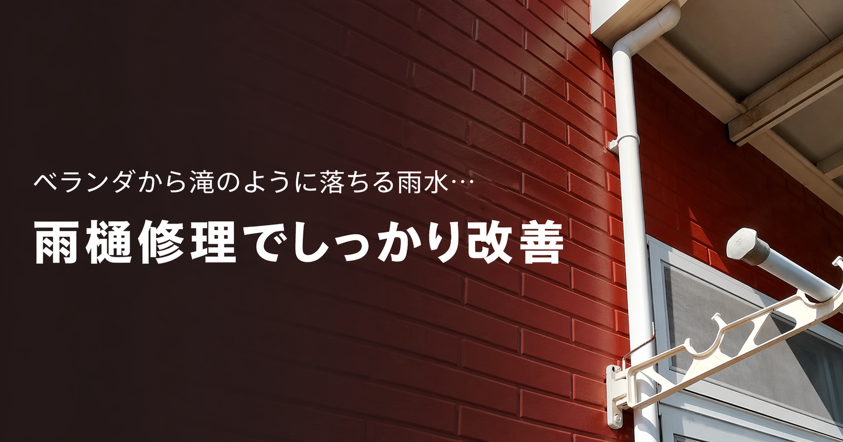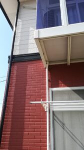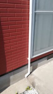 状況を詳しくうかがうと、雨樋が外れてしまっており、雨が降るたびに屋根・ベランダから流れてくる雨水が排水されずに途中であふれ、窓まわりや外壁、洗濯物を干すスペース付近に大量にかかっている状態とのことでした。