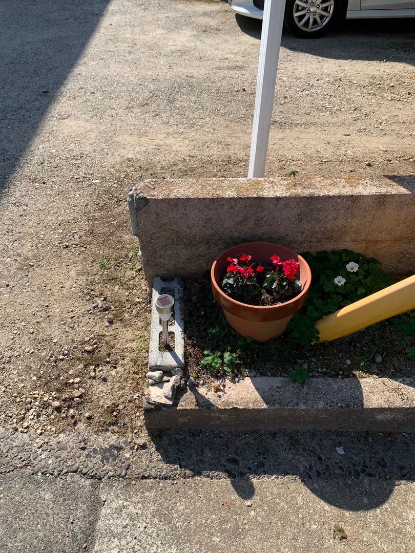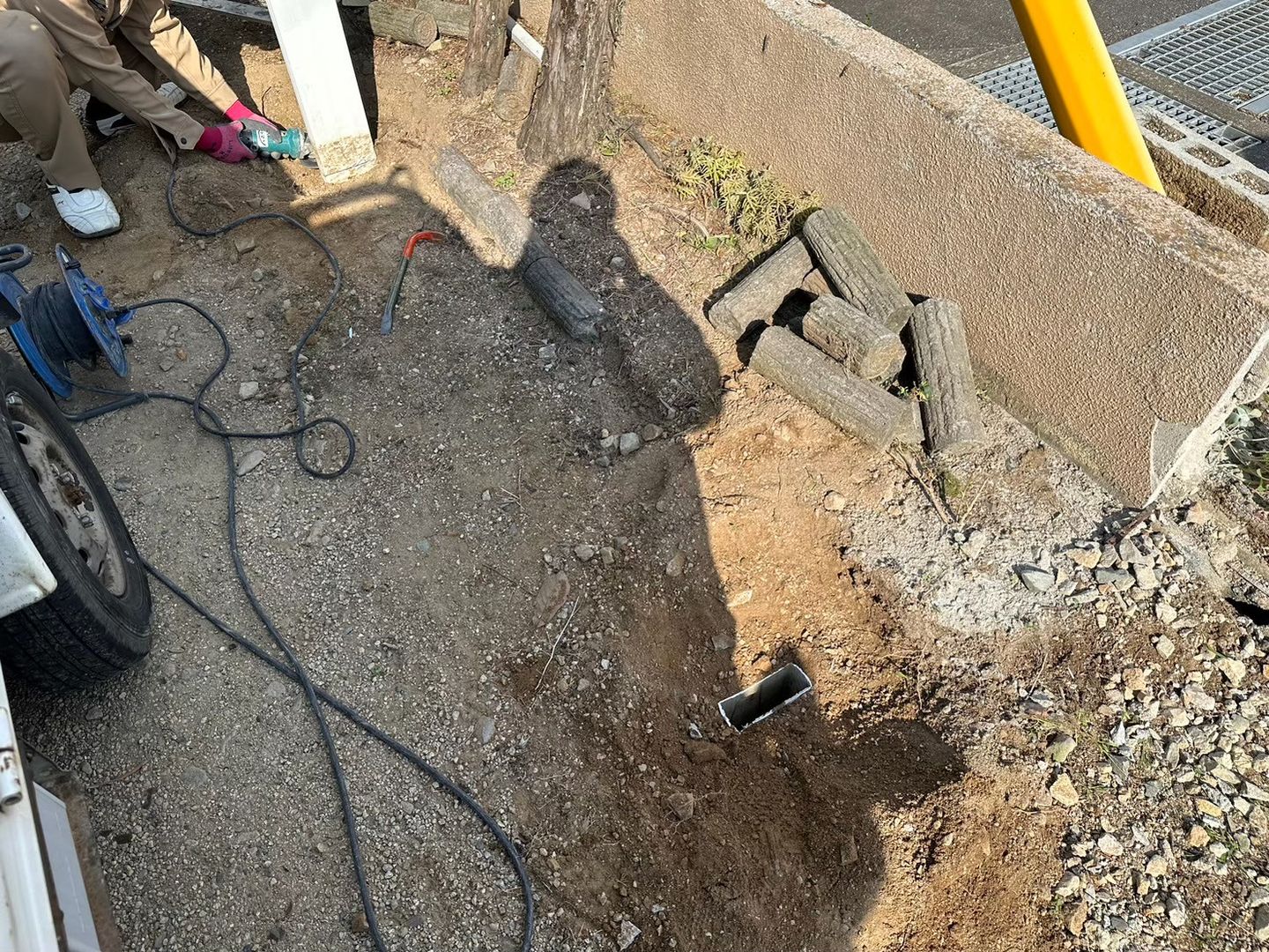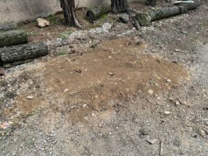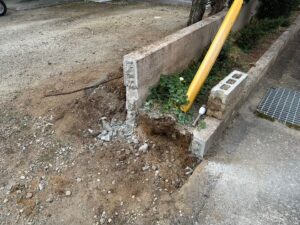 - 花壇の一部解体・撤去処分:入口付近の花壇のブロックをコンクリートハンマーで解体し、撤去しました。補修工事は今回の範囲外となりますが、出入りしやすいスペースを確保しています。