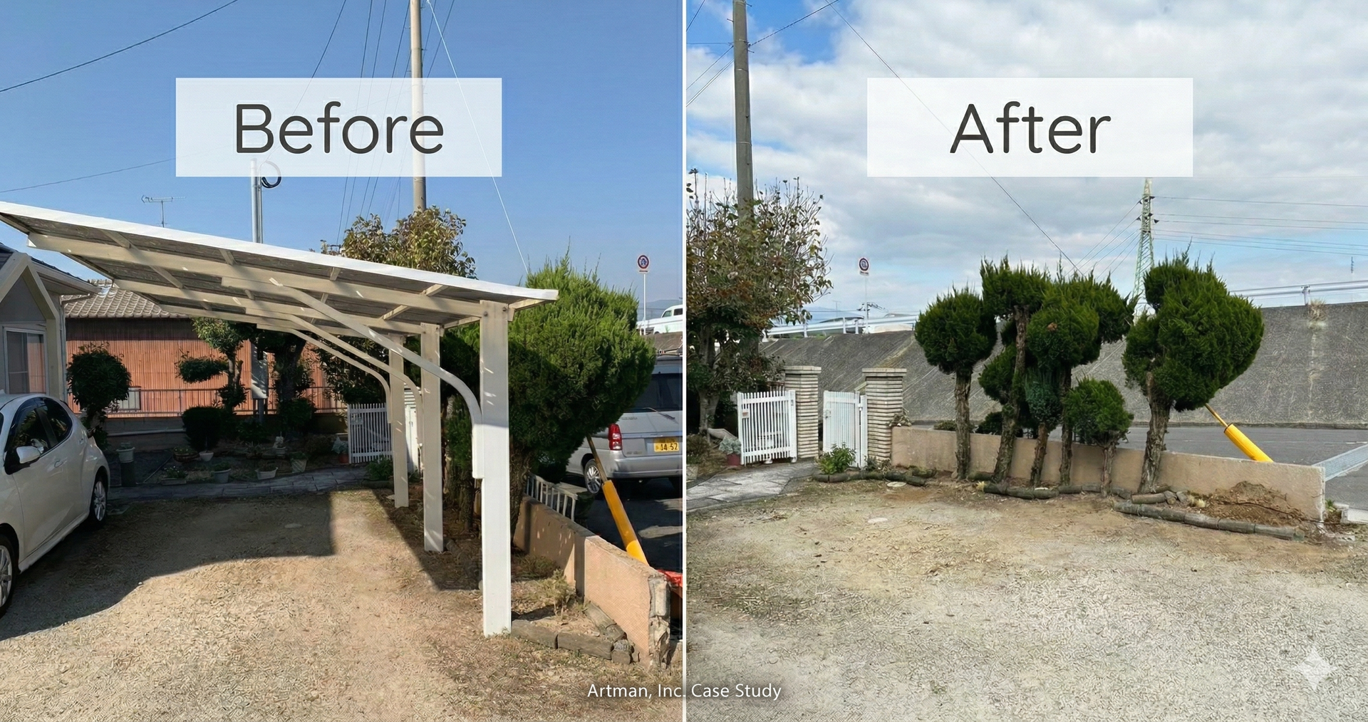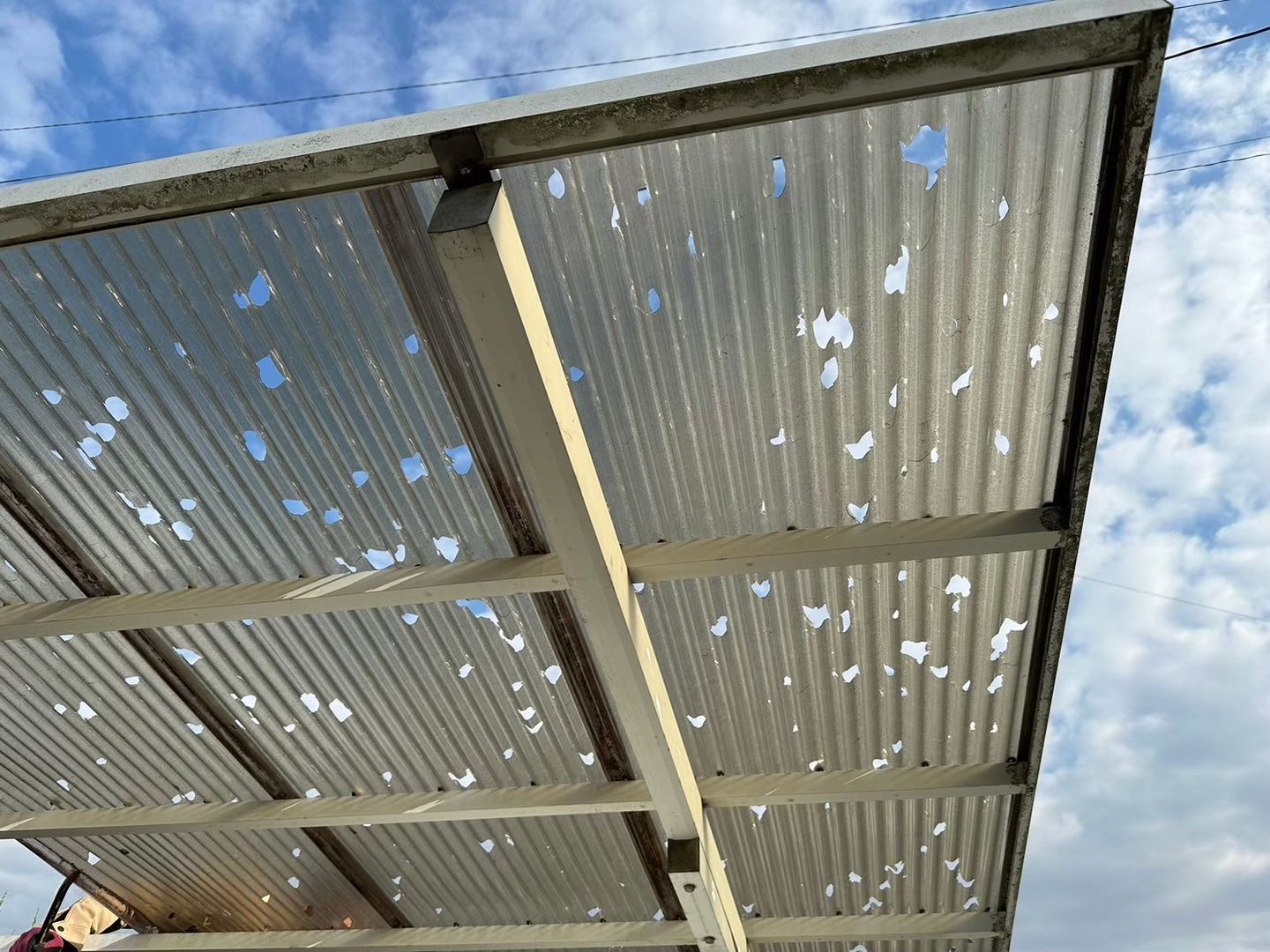 - 雹害で屋根が穴だらけになり、機能を失っていたカーポートを完全撤去