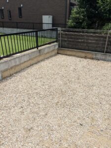 - 花壇があった部分を整地し、高さを周囲の砂利スペースに合わせる