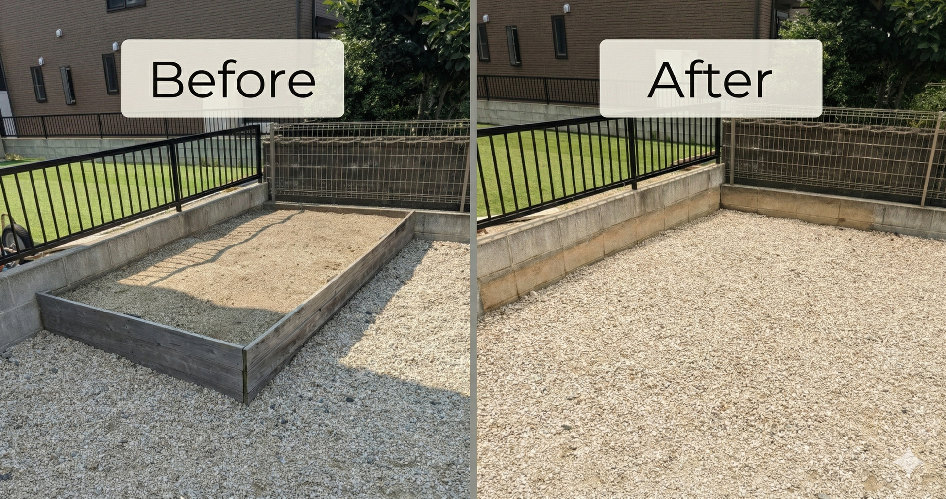 - 撤去・残土処分・砂利敷き直しをワンストップで実施
