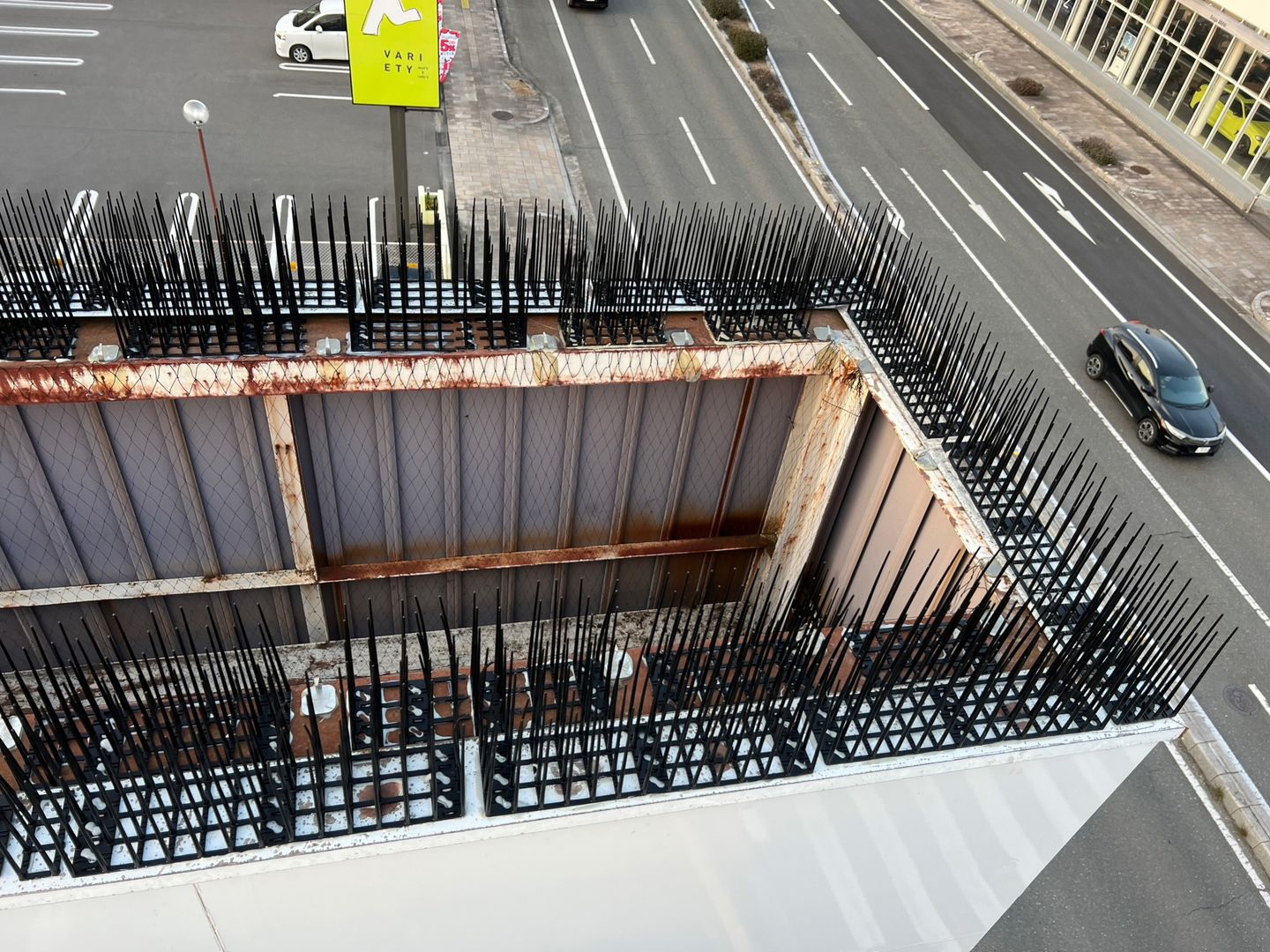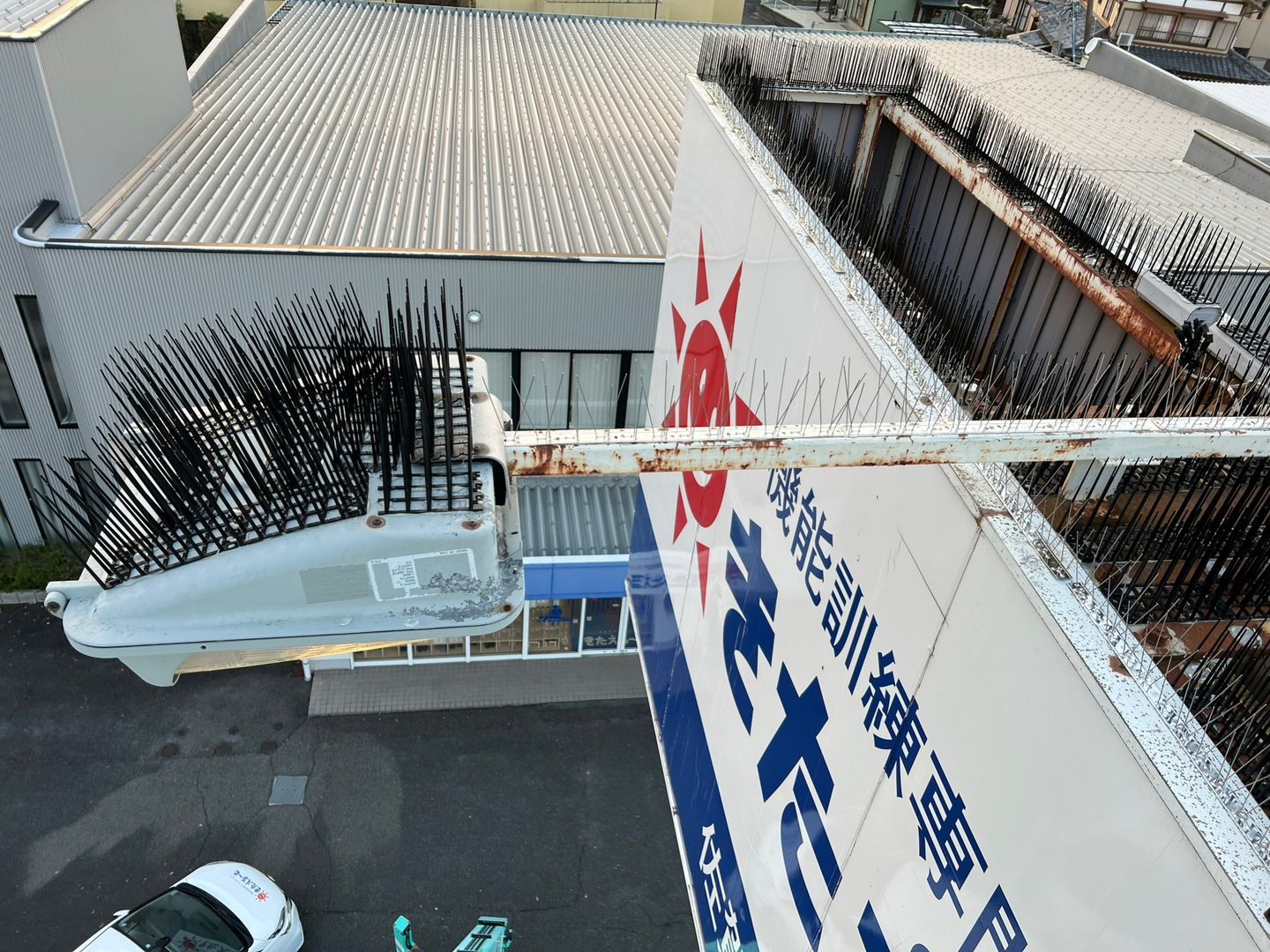 今回ご相談いただいたお客様は、店舗の看板周辺に鳥が頻繁に集まり、駐車場に停めている車やその周辺にフンが落ちることに長年悩まれていました。