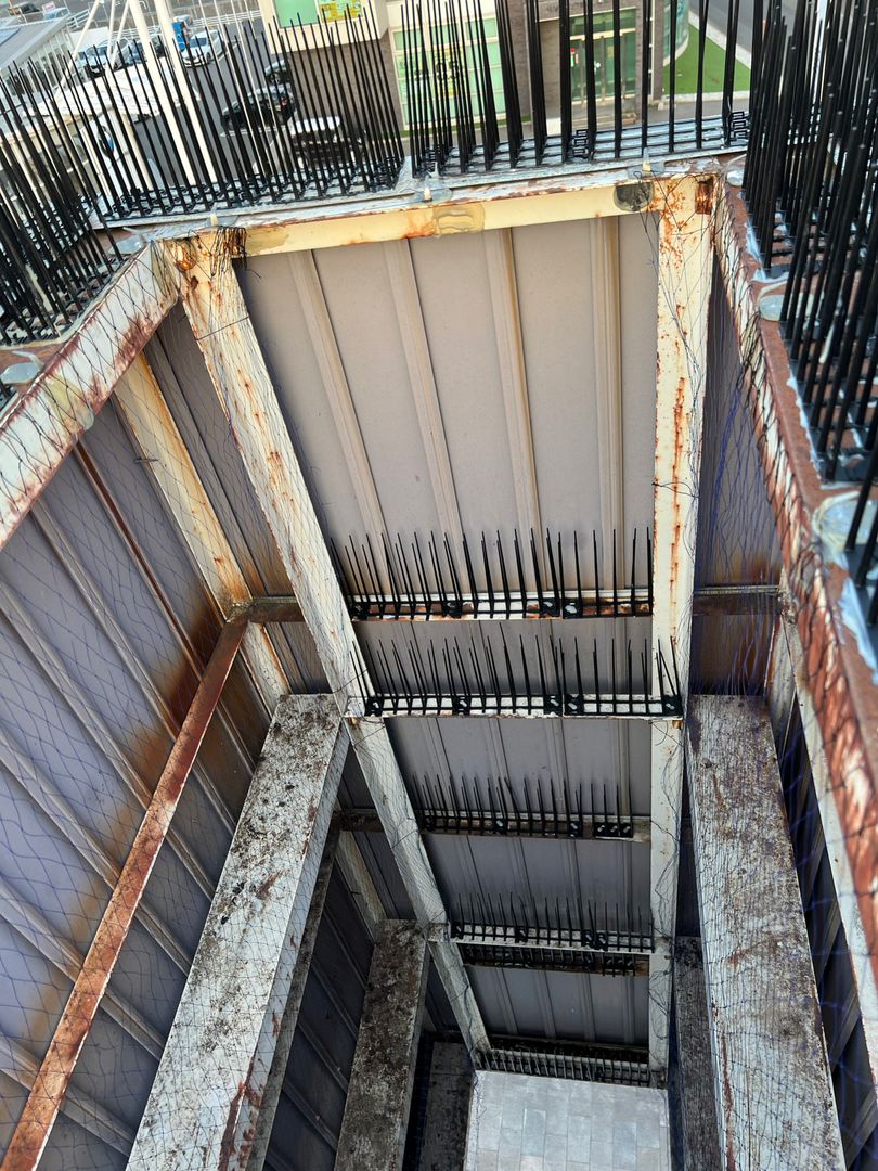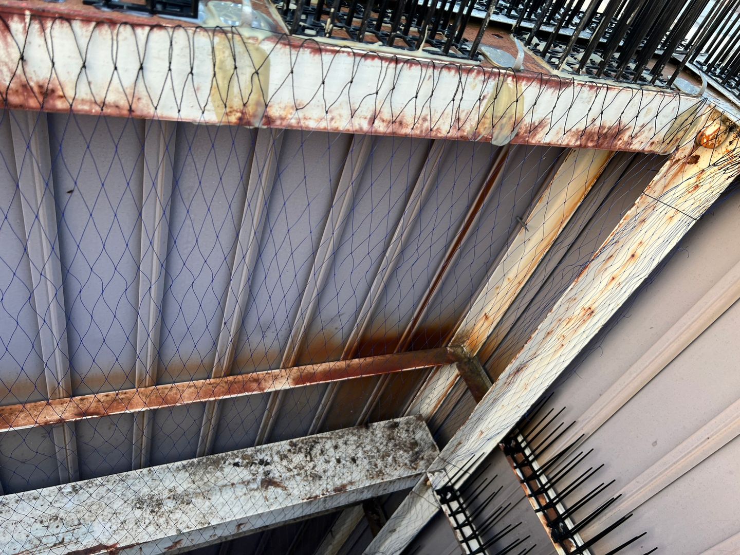 - 防鳥ネットの取り付け:剣山だけでは対応しきれない範囲に防鳥ネットを設置。鳥の侵入・滞留を面的にブロックします。
