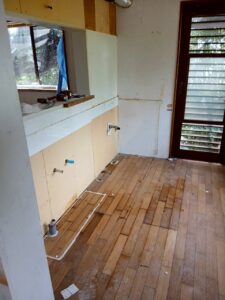 今回のリフォームは、キッチンの設備交換だけにとどまらず、空間ごと作り直す大規模な工事になりました。
