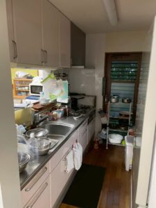 - 使い勝手:動線が窮屈で、調理中にぶつかることも。収納が少なく片付かない
