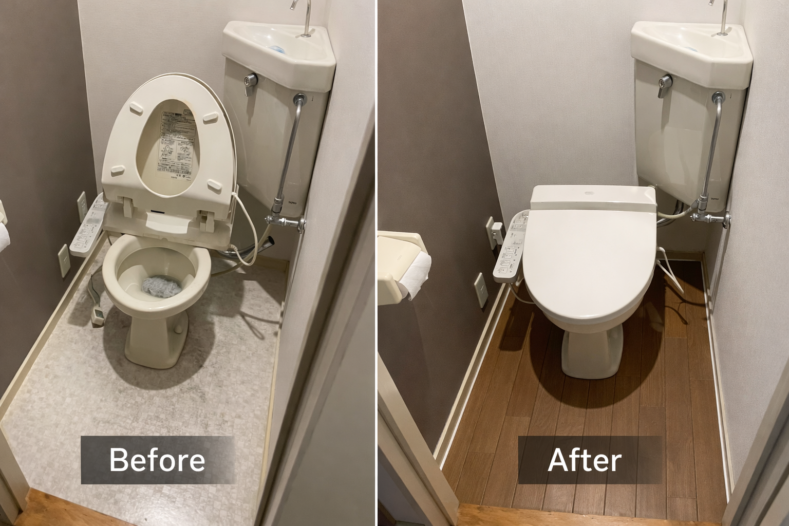 | 施工内容 | 便器取り外し、クッションフロア剥がし、下地調整、クッションフロア貼り、便器設置 |