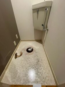 - 便器の取り外し: 施工前にまず便器を丁寧に取り外し、作業スペースを確保しました