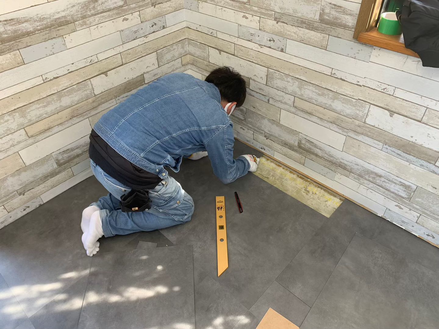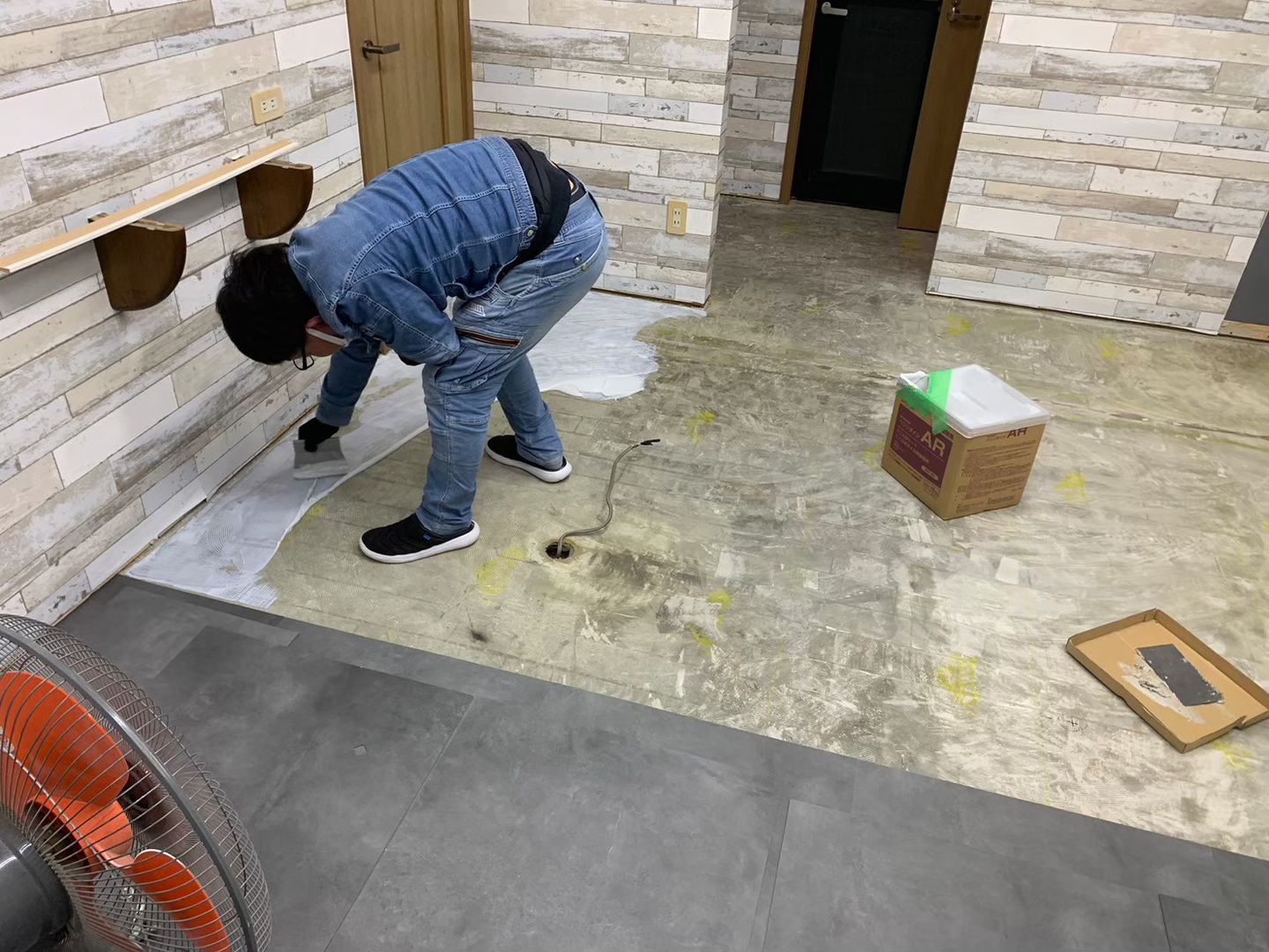 - 施工内容:クロス工事(壁・天井)、フロアタイル施工、トイレ内装工事、棚の制作・取付