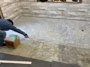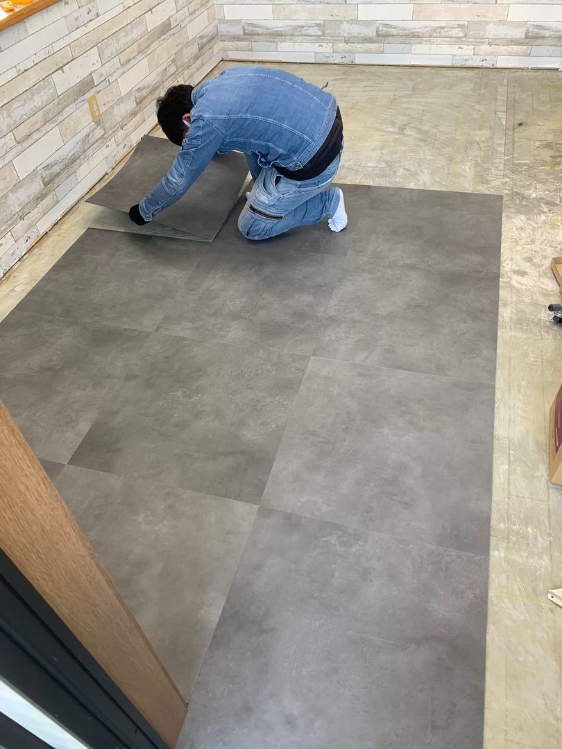 - フロアタイル施工:古いクッションフロアを撤去し、耐久性と意匠性の高いフロアタイルを施工。清掃しやすく、高級感のある仕上がりに